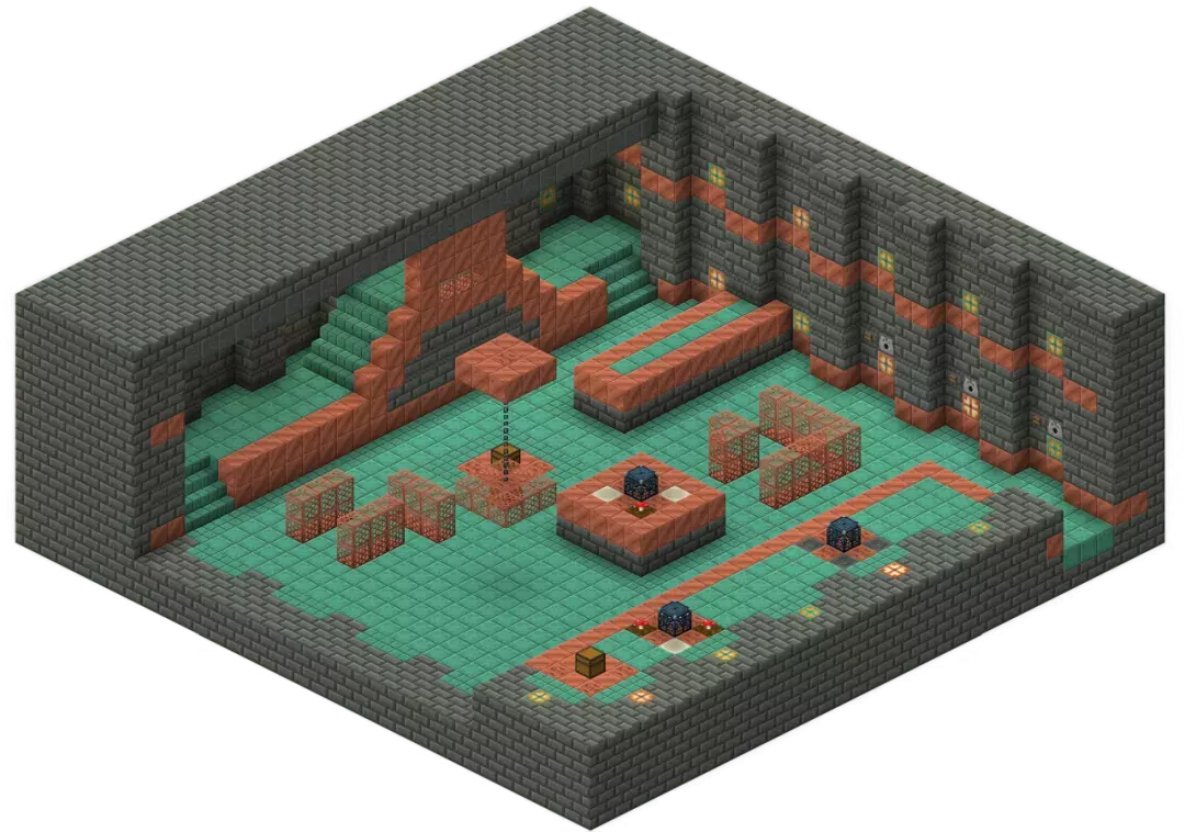 试炼密室是1.21的全新结构建筑,由多个大小不一的相通结构组成,主要分为入口、柱廊、楼道、交叉口和决斗室。