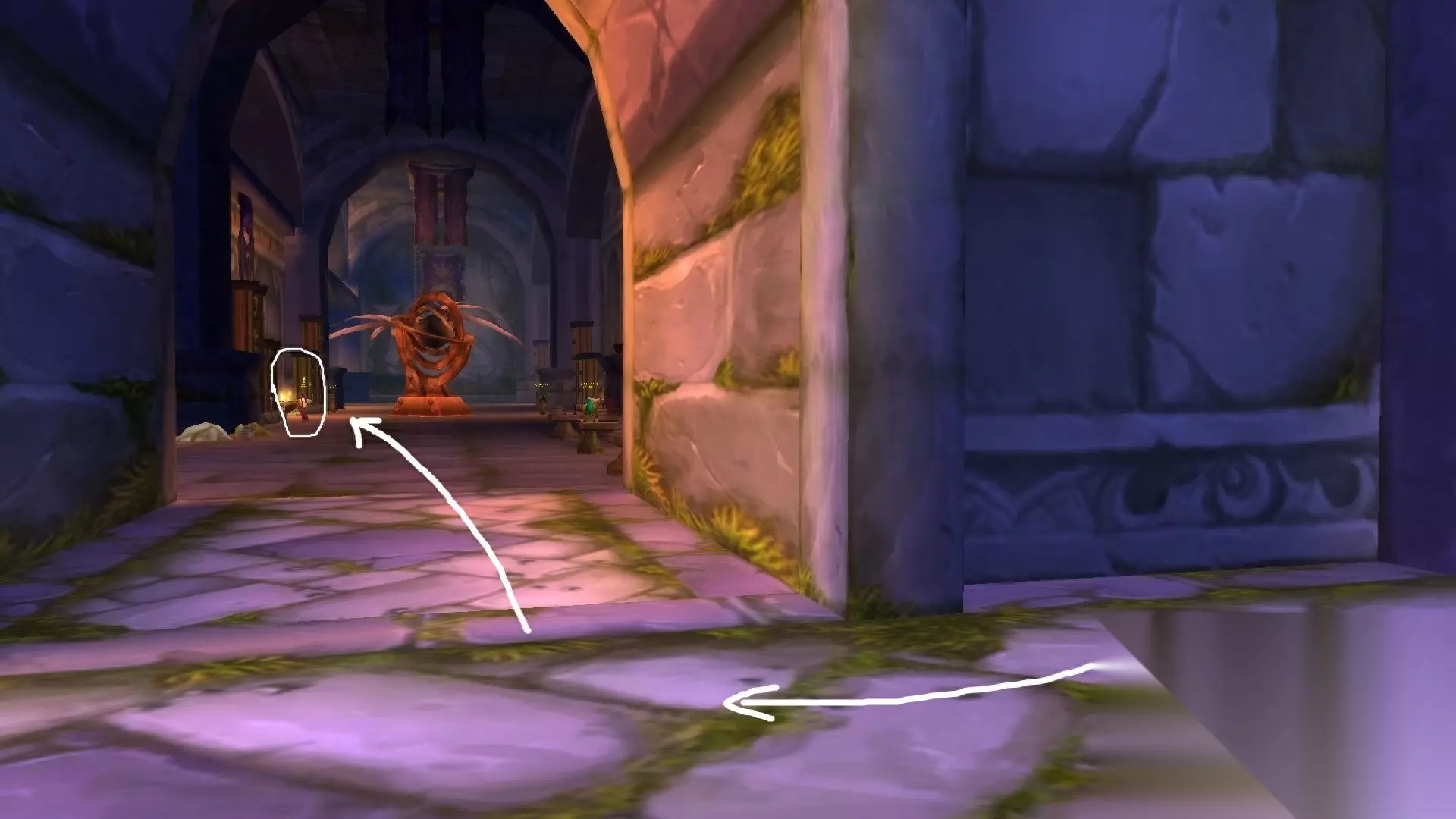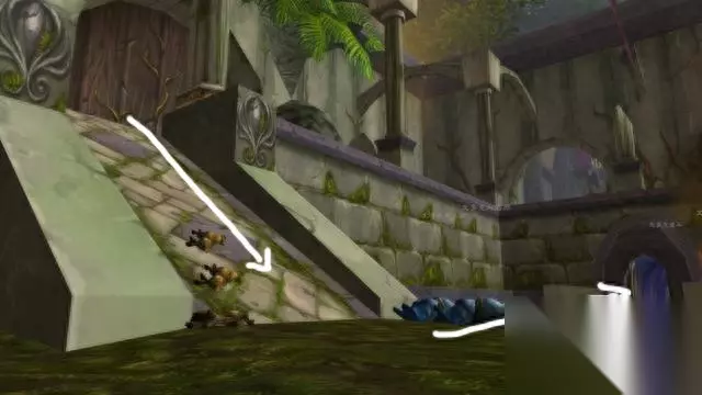 二、如何获得三种附魔秘药 1.进入厄运北副本,下台阶后直接左拐,用月牙钥匙开门,沿着长长的甬道进入图书馆。