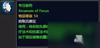 2. 专注秘药 使用:给你的头部或腿部装备附加魔法效果,使治疗法术和伤害法术的效果提高8点。无法与其它附加于指定装备的魔法效果重叠。这个秘药无疑是布甲三侠术法牧的最爱。