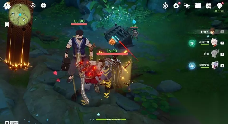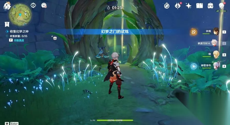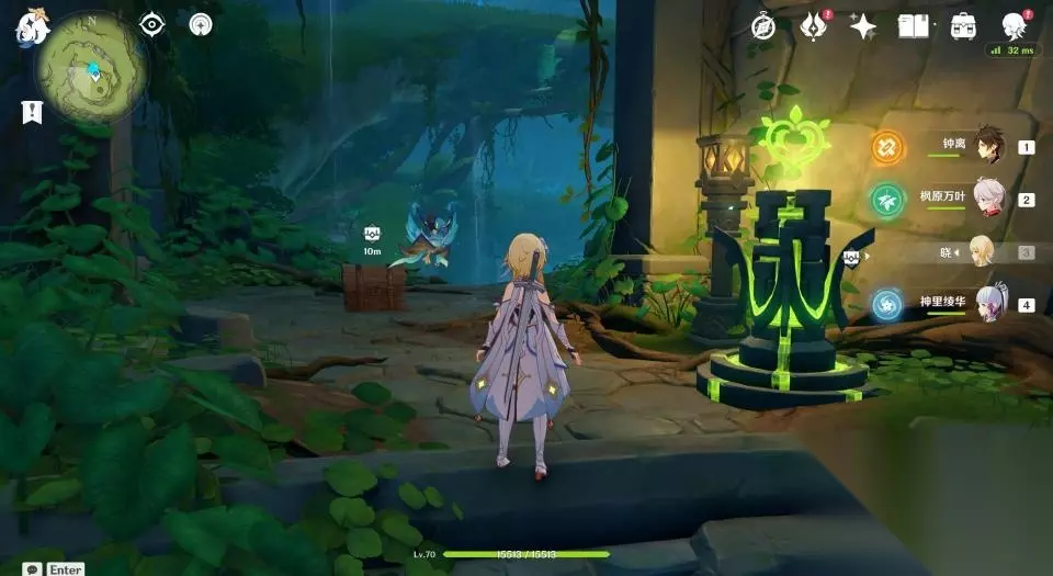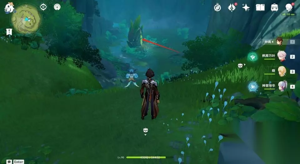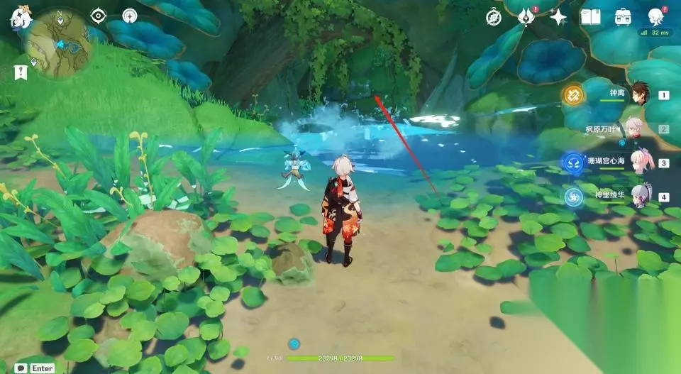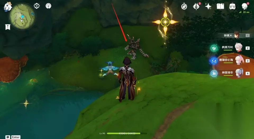 4、来到瀑布上方后继续前进,为了防止待会解密被干扰,玩家最好将路径上的怪物清理一下。