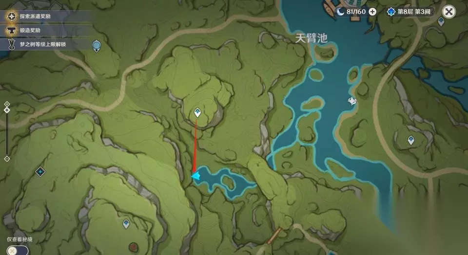 童梦的切片下方的水位需要通过解密、击败一个遗迹重机并于兰提沙对话后才可以下降。 1、传送到天臂池左下方的锚点,从锚点处去到正下方的湖泊处。