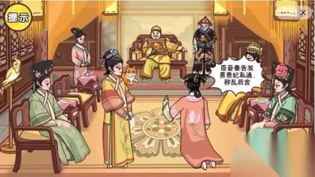 《剧情梗传》第十二关甄嬛传通关攻略 第十二关:甄嬛传 1、点击五次齐妃,祺贵人就会失败;拖动茶座上的粉色垫子给齐妃,齐妃就会失败; 2、旋转皇后的手3下,药丸掉出,将药丸给安陵容,安陵容就会失败; 3、将皇后右手边的点心给小鸟吃,皇后就会失败。