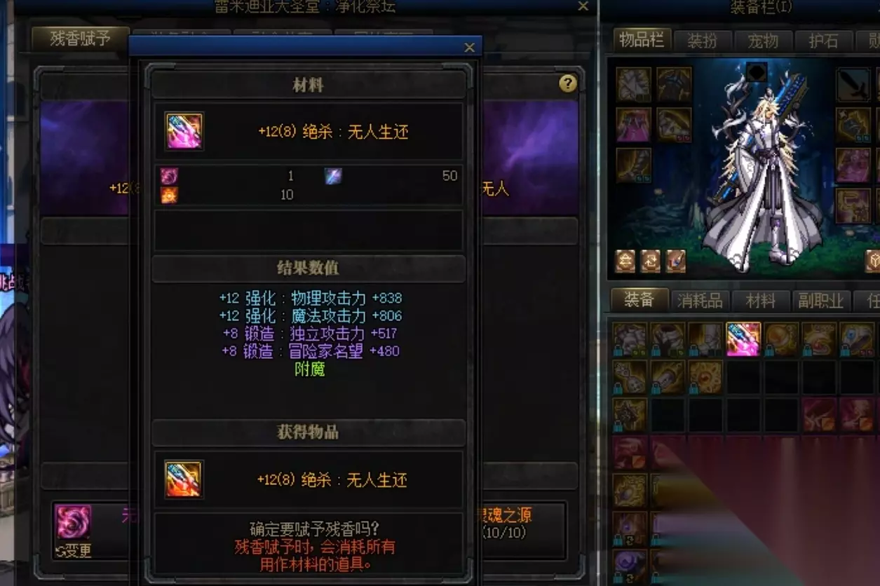 残香赋予是地下城与勇士中一项重要的装备强化机制,主要用于为武器附加希洛克专属属性。通过赋予无形残香,武器可以获得两条额外属性,其中第一条属性立即生效,第二条属性则需要穿戴3件希洛克装备后才能激活。这一机制能够显著提升武器的战斗效能,是高端玩家提升战力的关键途径之一。