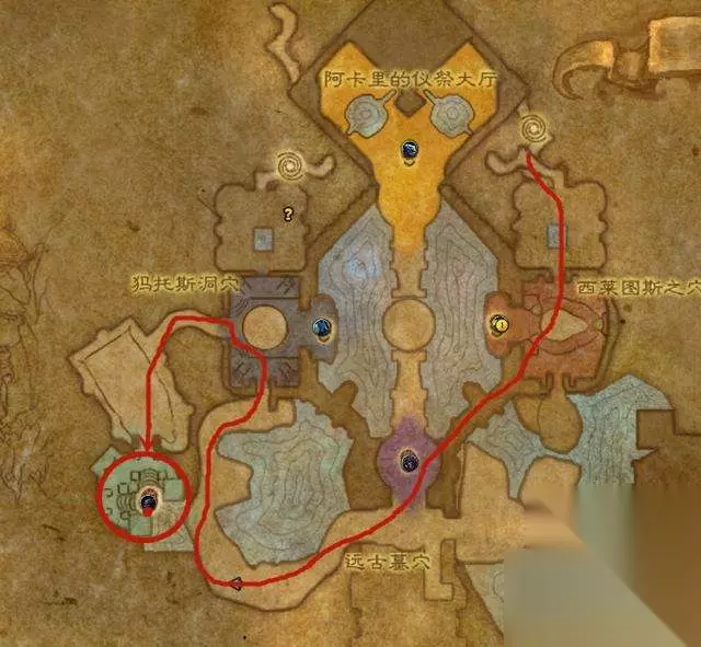 在副本上图的位置内,跟他进行对话,之后到远古法庭门口再次对话,开启保护战,不要让敌人攻击到布莱恩即可。