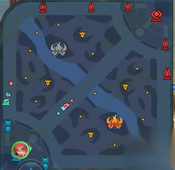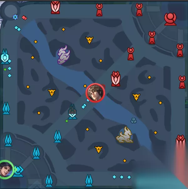 四、王者峡谷更新 1、中间道路两侧的草地向外移动约80码,离线距离较远,中间道路的精神巡逻范围较窄,远离草地。中间道路现在更安全,不容易被抓住,但蹲下的难度也增加了。 2、小地图新增了一塔钢防线特性和自己塔后补血花信息显示。你可以清楚地知道哪个塔有血袋。