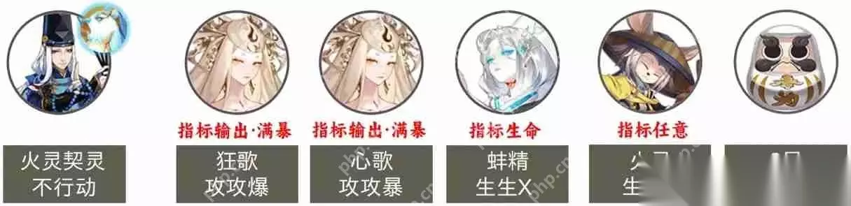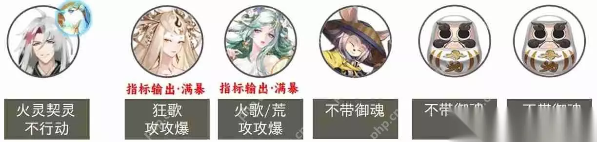 阵容推荐:天照2+祸津神+达摩2 (X表示任意属性) 速度配置:狂歌照>158>128、心歌照、祸津神、铁鼠、达摩 ①注意:晴明可以携带任意属性和等级的火灵契灵。天照2可以替换为同速度同御魂的须佐。 ②面板参考:狂歌照:2.175万,心歌照:2.28万 ③打法:全员使用妖术,挂机模式 ④提醒:天照2最好是满级3技能,不满级2技能,这样无需考虑站位; 如果两只天照都是满级2和3技能,则需要调整站位,让天照1先行动,然后拉动天照2行动 (参考站位:晴明背对视角,天照1站在左2,天照2站在右1)。