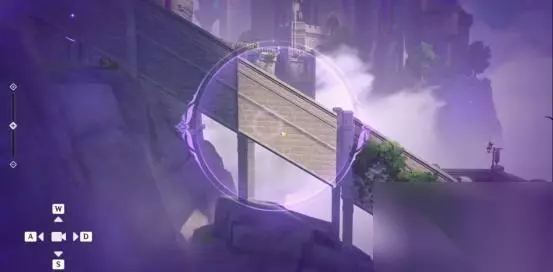 调整完成后,顺着楼梯爬上去,即可在道路尽头拿到第二个城堡碎片,同时可以通过前方风场返回最初的平台。返回最初平台后,我们将城堡模型调整至如图位置,即可完成解密,继续前进。