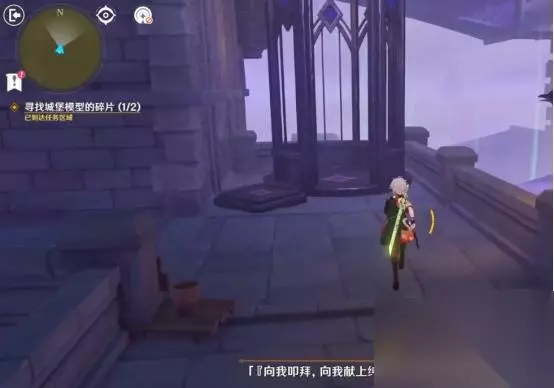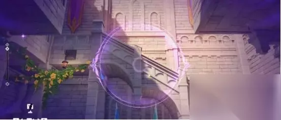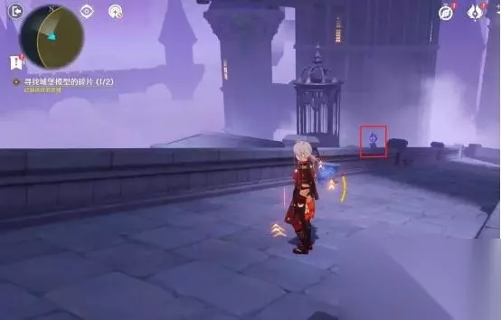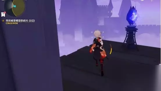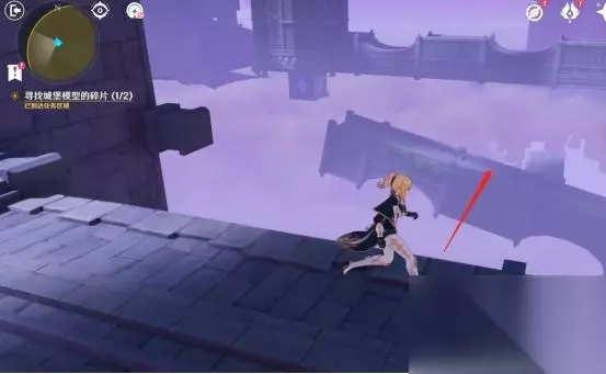调整完成后,我们借助风场飞向前面的平台,随后视角左转飞往左侧建筑处,顺路前进,就可以拿到第一个城堡模型碎片。