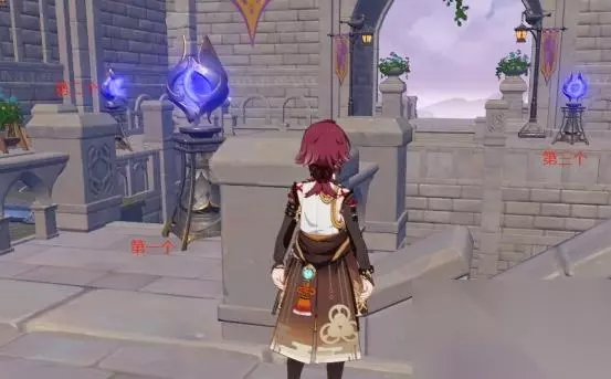 3、第三处 第三处解密,老熟人了,我们在第一个秘境遇到的夜鸦骑士莱昂再次被困住了。这里的三个机关顺序如图所示,按顺序依次调整好后完成解密。