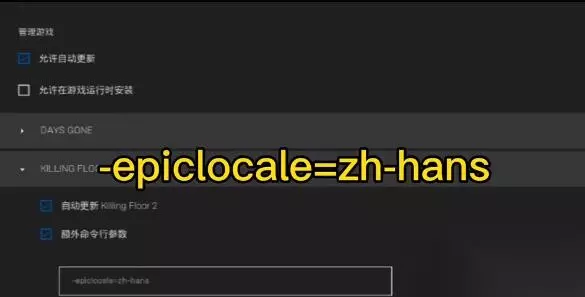 4、然后只需要将-epiclocale=zh-hans输入进输入框中。