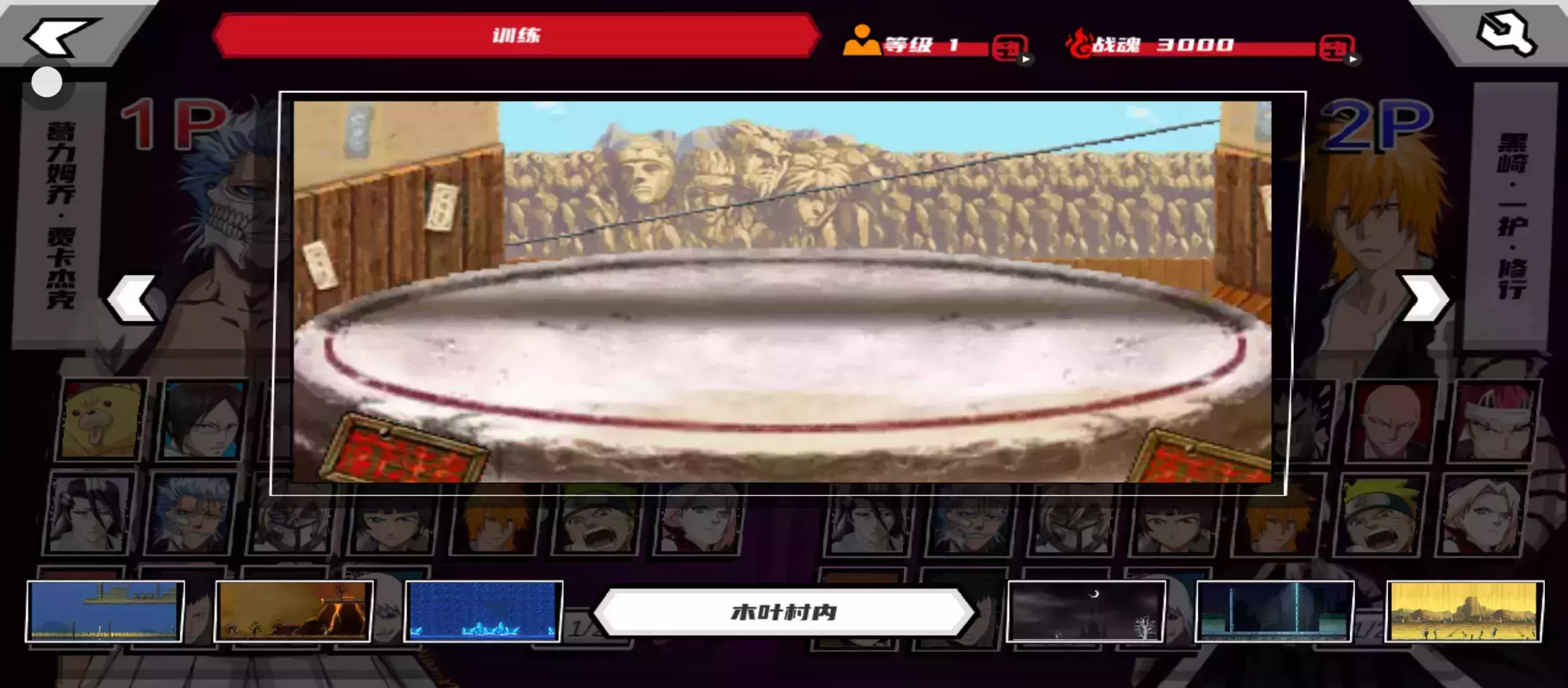 木叶村内:《火影忍者》中木叶忍者村充满生机与活力。此场景为一个巨大的村内格斗场,简易的场景更加让人肾上腺素激增。