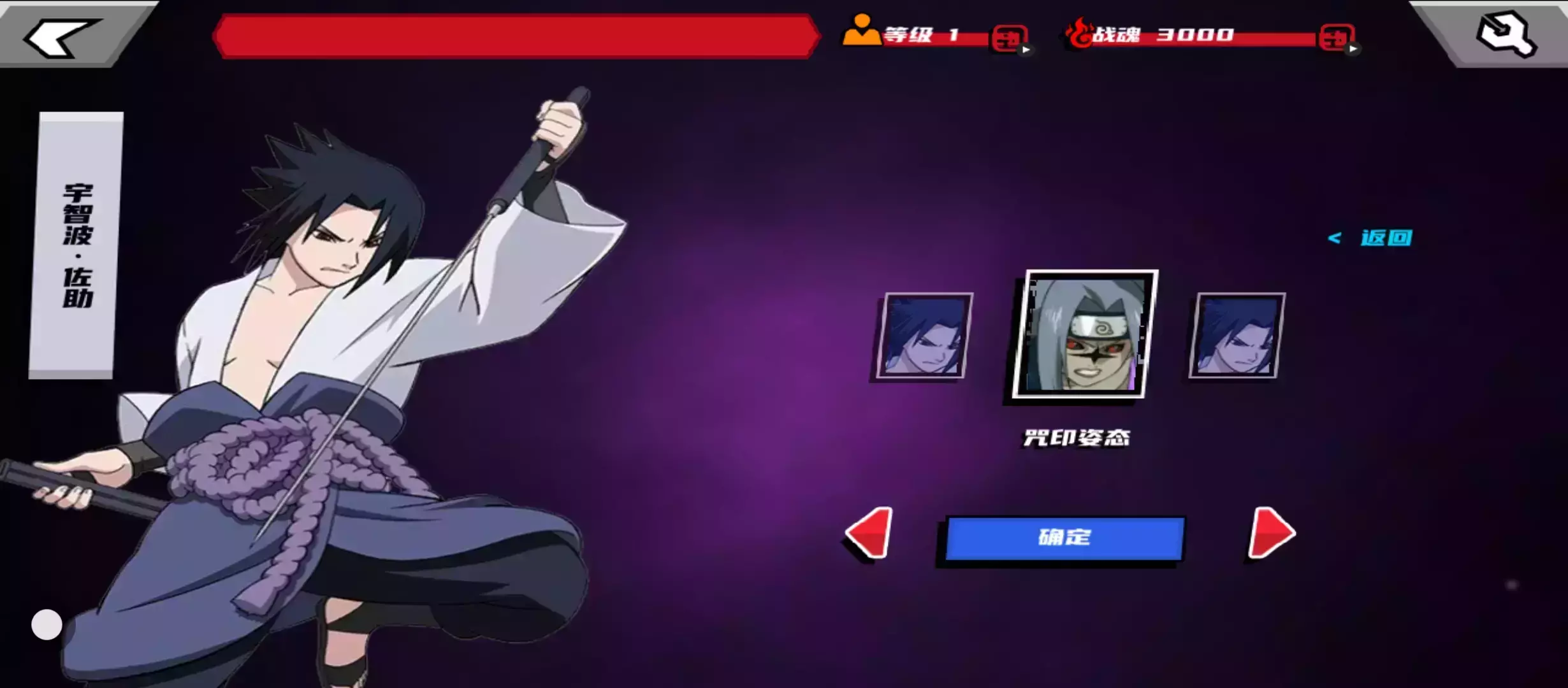 宇智波·佐助·咒印姿态:佐助在获得咒印之力后,实力大增。游戏中的咒佐将以狂暴的攻击风格呈现,咒印状态下的技能不仅更加具有侵略性,还带有特殊的咒印特效,让玩家感受其强大的力量。