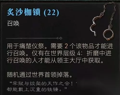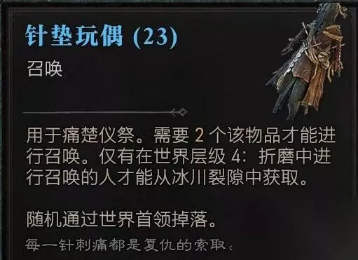 3、使用材料:炙沙枷锁*2、针垫玩偶*2即可召唤boss【安达利尔】;