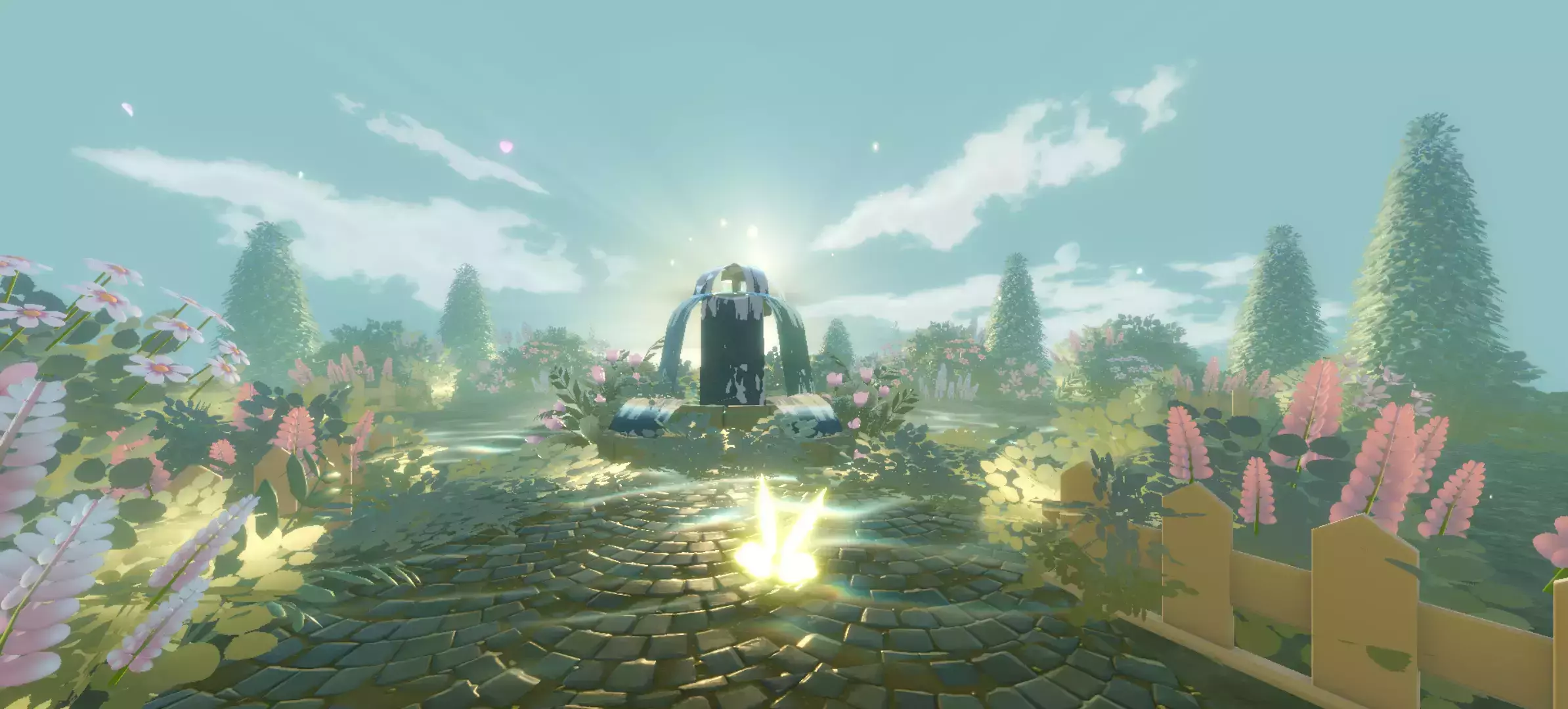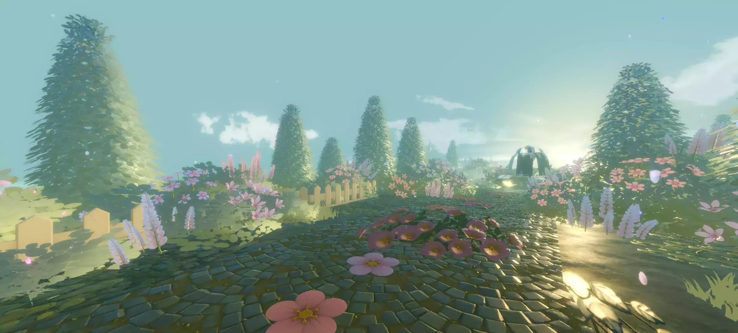 这里就是上铺厚的了,还是一样,有许多树木花草的,中间还有一个建筑呢,也是非常的适合拍照打卡,这里像花仙境一样的美