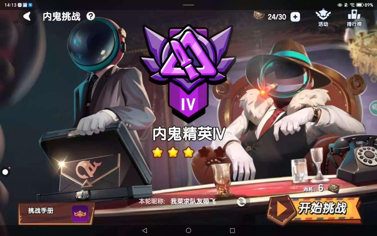 自从到达了内鬼精英四3星之后,我发现每一局都难。我说不说话发不发言,人机都要不票我要不票队友,给我搞郁闷了。谁知道单排随机路人队友的话,内鬼挑战打到高段位,到底要怎么玩?