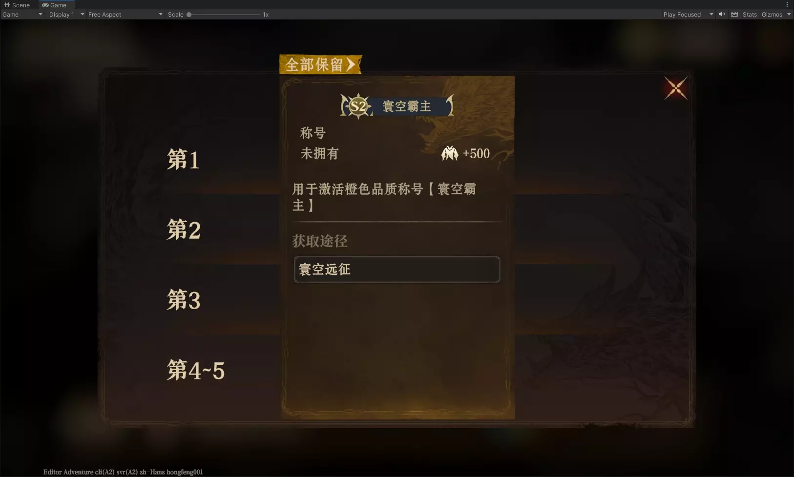 及本期限定称号——寰空霸主