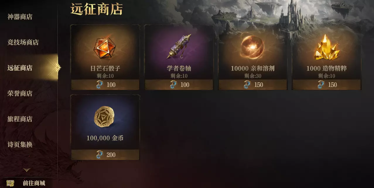 兑换日芒石骰子、造物精粹、亲和溶剂等稀有资源