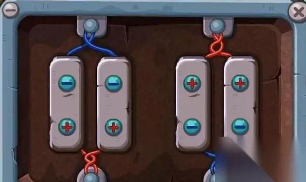 4、来到“拉布朗铜矿场”,找到一台机器。按照正负接线的方法完成上面的小游戏,矿场上的电门就会打开。