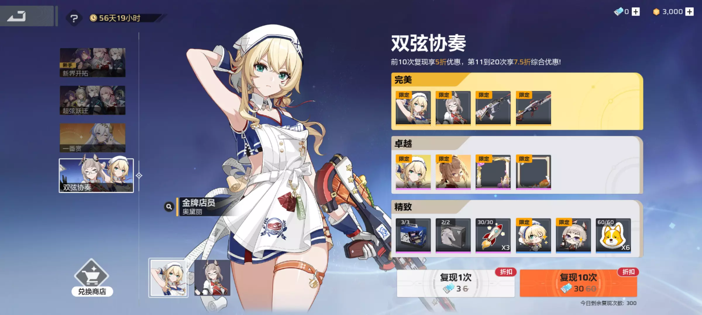 完美品质超弦体时装「奥黛丽·金牌店员」和「梅瑞狄斯·全局观察」已加入「双弦协奏」,引航者可以使用「镜像序列」复现获得。