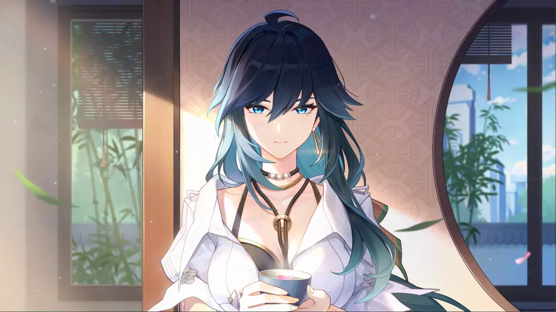 在宿舍中,拉薇褪去了平时的战斗服,换上了一套干爽利落的便服。受拉薇的性格和经历影响,她更偏爱简约、便于行动的服装设计,即使是简单的服装,在拉薇的精巧搭配下,也透露出淡淡的优雅气质。
