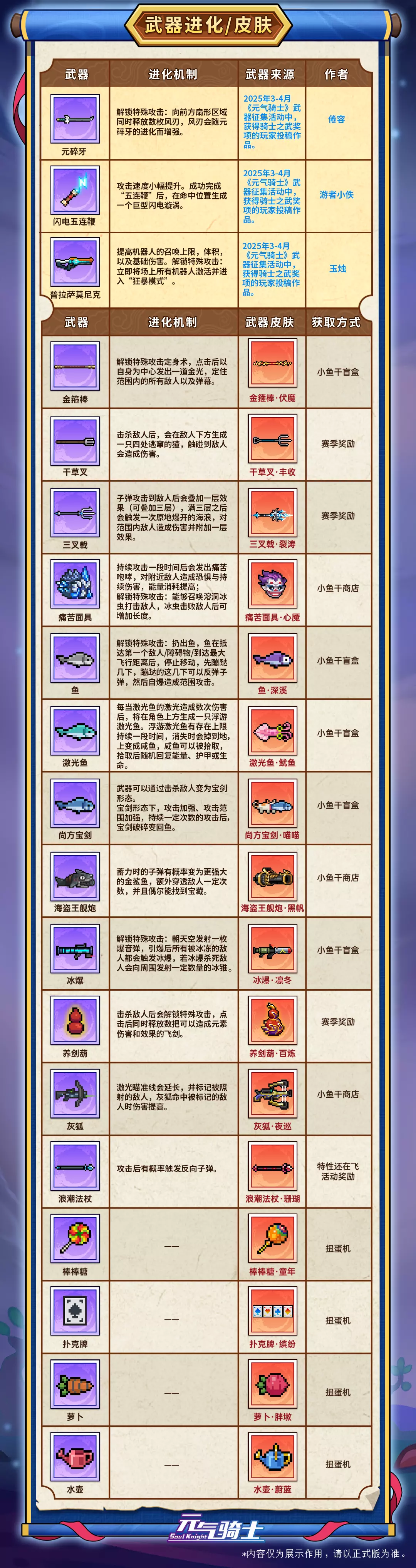 下面是7月版本的武器进化和武器皮肤以及其他更新调整内容的介绍哦!