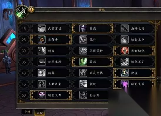 主要的天赋树,我在第一赛季的经验帖里给大家分析过了,就不做过多的陈述,主要聊一下9.1版本修改了的PVP天赋。 首先,针对评级战场来讲,烟雾弹+暗影决斗,肯定是常驻的功能性PVP天赋了,对于第三个空挡的选择,我个人倾向于根据场内不同的情况作出调整,我个人的选择主要有这几个:窃贼的交易、拆卸、洞若脱兔。