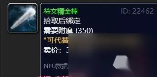 三、符文精金棒有什么用处 这项附魔能永久地为一个戒指增加全部属性4点。 但要注意只有附魔师本人的戒指才能被附魔,并且附魔后的戒指将转化为灵魂绑定物品。 请注意符文精金棒只能应用在等级不低于35的装备上。