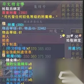 四、符文精金棒图纸在哪 图纸购买地点位于联盟的地狱火半岛,塔哈玛特神殿内的NPC“沃德辛”,以及部落的泰罗卡森林,裂石堡内的NPC“伦格尔”。 值得注意的是,这是一种限量图纸,每次刷新的时间并不固定。 五、怎么制作符文精金棒 制作符文精金棒的过程需要以下材料:1个精金棒、8个大块棱光碎片、8个强效位面精华、1个源生之能。 这是一项高级的附魔制作,确保你准备好所需材料,以便顺利制作出这个强大的附魔物品。