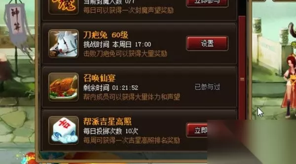 【相关推荐:命格碎片兑换方法】 神仙道帮派吉星高照怎么获得 吉星高照是帮派达到五级后的特殊玩法,玩家使用后虽然不能获得境界点但是可以获得积分。