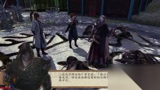剧情:达到战斗目标后,傀尸准备操控更多的傀儡,此时锦衣卫指挥使「游进」及属下「封青霄」出现,正好追查至此,傀尸见状,在已得庄主尸身情形之下,先走一步。谷月轩得此机会询问其朝廷的「法外三旬」一事。随后游进继续追击傀尸,谷月轩、荆棘两人查看「萧复」伤势,此时恰巧峨嵋派「水盼盼」欲顺道拜访山庄,不料竟碰上如此惨事,愿出手相救,诛杀妖人,一行人同样准备继续追寻傀尸。