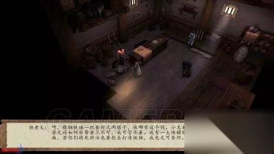 2.进入门口有大熔炉的屋子,铁老三的胞兄并不看好铁老三现在的营生,也不准备帮他打造。若是要帮,只得由玩家打造。在屋子地上找到精钢。