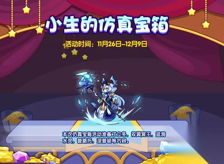 本次宝箱,在大奖库中为大家准备的宠物有:立冬,双翼冥王,蓝漪水灵,普路托,涅普顿! 其中,每次抽奖大奖的获得概率为1%。而在抽到大奖的用户中,3%会抽到立冬,3%会抽到双翼冥王,7%会抽到蓝漪水灵,39%会抽到普路托,48%会抽到涅普顿。 大奖库中的宠物还可以在兑换商店中用活动碎片进行兑换。 除此之外,兑换商店还为大家准备了:宠物末日审判者,艾瑟丽贝,暗黑尼克斯,阿尔戈斯,史小韵,赛施尔,哈妙尔等奖励兑换。
