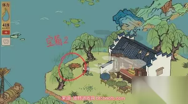宝箱二:在戏台附近的柳树下,打开获得金矿锭×6。