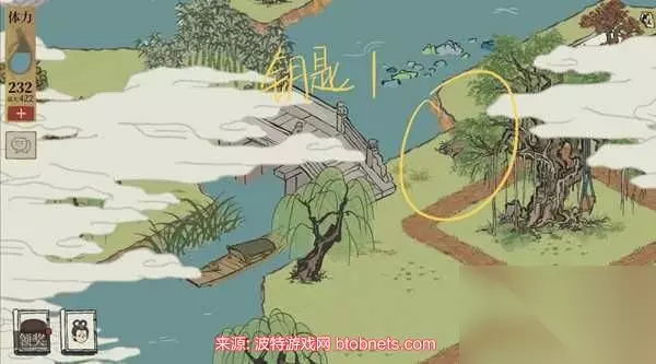 钱塘春行钥匙位置 钥匙一:在桥头的同心树底下。