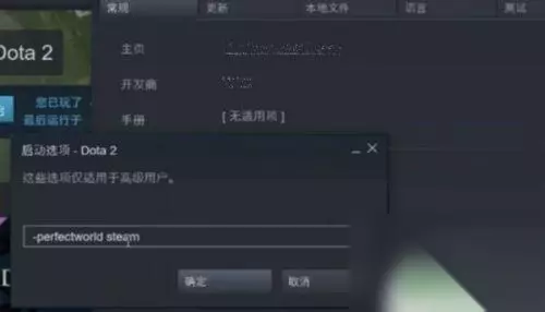 4.接着,我们在启动选项中输入【-perfectworld steam】这条指令,然后,点击【确定】。