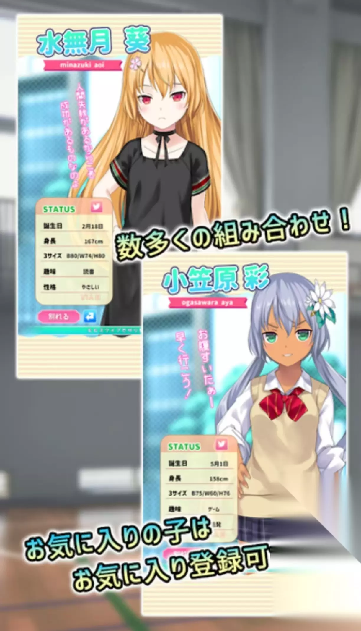《女友制作》玩家将拥有一个专属的女友,游戏内有着非常多可爱的二次元角色。需要在游戏内接受测试,根据不同的题目进行选择,最终会获得出现不同类型的女友角色。可以来到一个校园中进行恋爱,加入了很多新颖的玩法,还可以为角色自由的捏脸,通过接触可以互相增加好感度。会导致剧情走向不同的发展,玩家也需要去打工赚钱,花费金币了解更多的剧情故事。 手机扫码下载233乐园APP预约 预约订阅最新动态 优先233乐园APP下载 4、《闪耀!优俊少女》