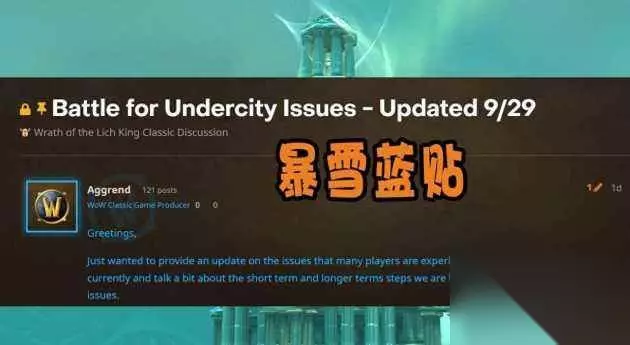 qNU 其实,该任务的BUG问题早在2008年正式服巫妖王之怒发布时,就已经出现过,外服玩家也纷纷遇到了这个BUG问题,即便是国服玩家体验WLK已经是后续版本了,这个任务的BUG依旧没有顺利修复,直到大灾变版本,暴雪才删除了这个任务,本以为历经了14年的时间,以现在的技术修复这个BUG问题绰绰有余,而且暴雪也确实在Beta测试服反复改善过,但没想到正式上线后,还是出现了BUG。qNU