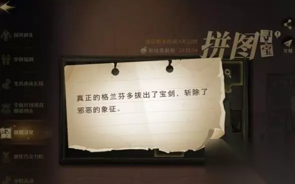 哈利波特魔法觉醒9.26新的碎片线索已经出来了,我们需要按照线索来找到真正的格兰芬多拔出宝剑的位置,来拥有一块寻宝拼图哦,那么小编下面就为大家带来斩除了邪恶的象征拼图碎片位置介绍。 哈利波特魔法觉醒真正的格兰芬多拔出了宝剑位置线索