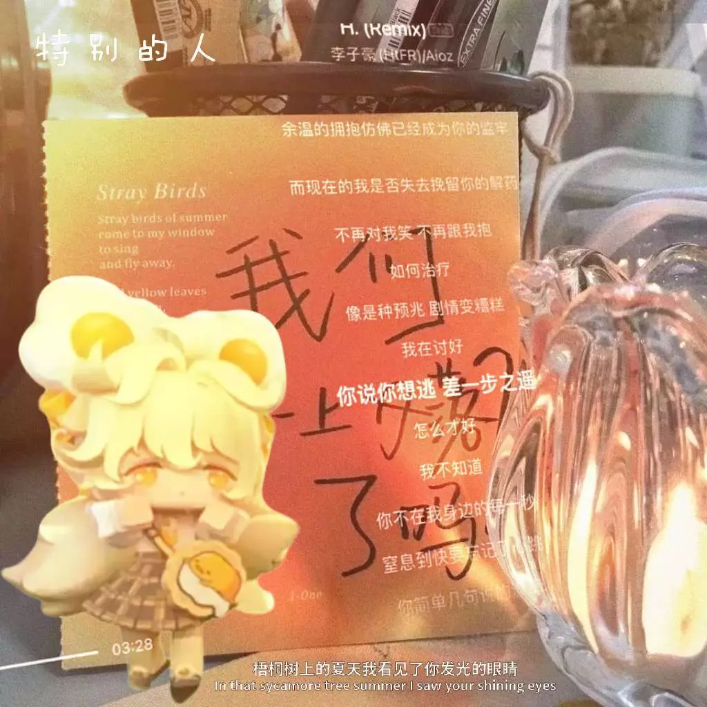 垂着脑袋像藏了一整个雨天的小委屈☔️ 蜷起的身影,和背后写满心事的卡片贴贴,“余温的拥抱”成了困住思念的小牢笼,可她攥着小物件的手,又偷偷把“想留住你”的心意,藏进梧桐夏夜里发光的眼睛,让所有遗憾,都裹上一层舍不得丢掉的浪漫💫