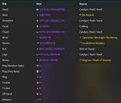 今天小编为大家整理带来魔兽世界11.1火法毕业装备如何搭配,相信对很多小伙伴们都有所帮助,更多精彩内容,多多关注本站,小编将持续为您更新 头部 首选“唤火者的丝质罩帽”,它能提供可观的法术强度和暴击几率,对火法输出提升显著。 项链 “无尽秘密法链”是不二之选,其增加的急速和精通属性,可让火法的技能释放更加流畅,伤害输出更稳定。 肩膀 “唤火者的丝质护肩”,能提供大量法术强度以及暴击加成,强化火法的爆发能力。 披风 “晶纹披风”不可多得,它给予的急速和全能属性,有助于火法在战斗中更快地积攒热度,打出高额伤害。 胸部 “唤火者的丝质长袍”是胸部的最佳选择,法术强度和精通属性一应俱全,大幅提升火法的整体输出水平。 手腕 “缚火者的丝线护腕”,提供的法术强度和急速属性,可加快火法技能的施法速度,增加伤害频率。 手套 “唤火者的丝质手套”,不仅有高额法术强度,还有暴击属性,使火法的暴击伤害更加可观。 腰带 “咒火褶裙腰带”,其提供的急速和全能能让火法在战斗中表现更为出色,持续输出能力更强。 腿部 “唤火者的丝质护腿”,法术强度和精通属性优秀,为火法提供稳定的伤害加成。 鞋子 “咒火褶裙便鞋”,增加的急速和暴击,有助于火法在移动中也能保持高输出。