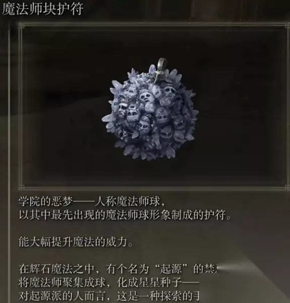 效果:提高12%魔力伤害,降低10%减伤率 法师毕业护符之一 获取方式:去做塞尔维斯支线,在菈妮支线开始后,获取指头刀前完成。否则塞尔维斯会死亡任务失败。