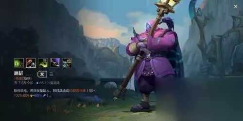 一技能:跳斩 贾克斯瞄准目标后进行跳跃至其身边,如果目标是敌方单位的话会造成一定伤害,友方单位则只会有跳跃位移的效果。值得注意的是,在手游里这个技能不再能对放置的眼睛释放,跳眼逃生再也不是贾克斯的能力了,可以说收到了一定程度的削弱。