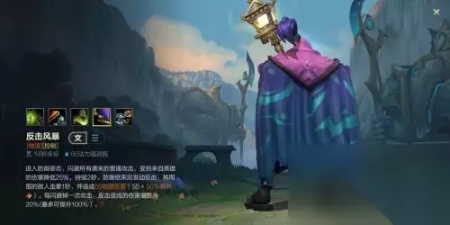 三技能:反击风暴 这个技能在激活以后会提供给贾克斯全联盟最独特的能力-在一定时间内免疫所有的物理攻击伤害并在两秒后造成反击效果,将处在范围内的敌人给击晕。同时在于技能生效期间贾克斯所受到的范围魔法伤害也会有所降低。