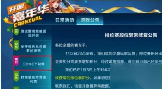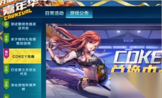 3.进入都按活动公告以后,找到左侧点击【cdkey兑换】。