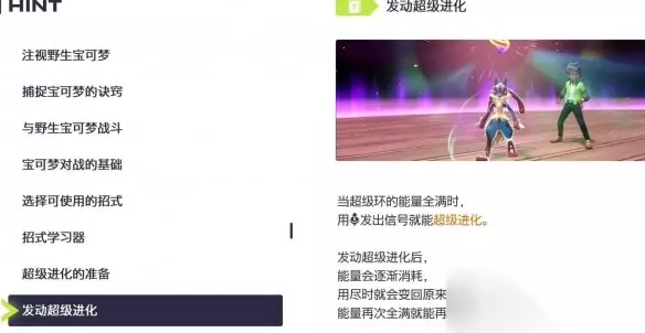 发动超级进化 当超级环的能量全满时,用R发出信号就能超级进化。 发动超级进化后,能量会逐渐消耗,用尽时就会变回原来的样子。 能量再次全满就能再次发动。
