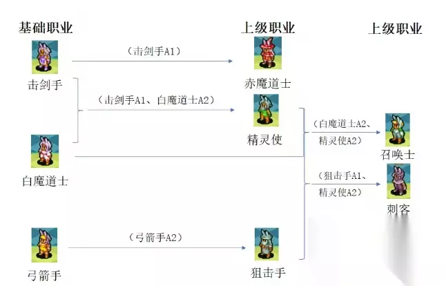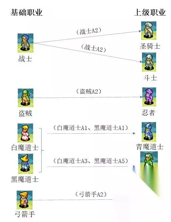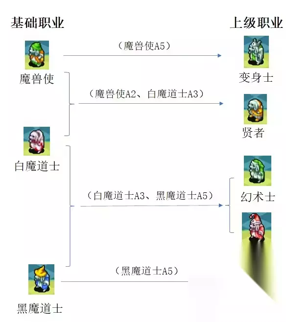1、幻术士 与人类的幻术士魔法类型相同,属于低阶的全体魔法,虽然画面比较华丽,但是伤害比较低。有【太阳之炎】(火)【暴风】(雷) 【暴风雪】(冰)【南十字星】(圣)【星之尘埃】(无属性)【幻影之帝】(水)【大地的见证】(地)【黑色旋风】 (风)。前期、中期可以作为主职业使用,后期伤害确实太低,建议转炼金术士、贤者。 2、炼金术士 本游戏最强魔法职业之一,最大的特点是可以自由使用【道具】,还能装备一个副职业技能。拥有守护术、即死 、陨石术、夺魂术、核融术、毒气术、蟾蜍术等。既有攻击魔法,又有异常状态魔法,是很实用的角色。前期副职业技能可以搭配幻术士,后期搭配贤术。 3、贤者 本游戏最强魔法职业之一,魔法种类丰富,有吸魂术、黑暗术 、水球术 、气流术 、最强回复术 、万倍核融术、细菌术、阿鲁迪玛爆炸。缺点是由于装备的武器是法杖,攻击距离只有1格,他的最强魔法阿鲁迪玛爆炸也只能间隔1格才能打到敌人,这一招被机动性、移动力、速度给限制了,如果可以远程施法的阿鲁迪玛爆炸就会非常厉害,有点可惜。 五、维艾拉族 推荐转职:赤魔道士、召唤士、狙击手、刺客
