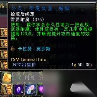 使近战武器获得50点火焰和奥术伤害加成,卡拉赞掉落 附魔武器—猫鼬