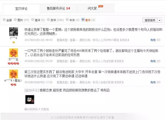 09提供销售的另一款鼠标产品也受到了许多差评,鼠标走针很严重、外观差等问题。 在评价中可以看到,买家对JY的评价变成了“朋友都说这个主播坑”的印象。这对于JY一贯严谨的态度是十分不利的。 JY也及时意识到这个问题,及时终止了与09的合作关系,自己打理淘宝店,产品质量也得到了提升,现在基本看不到差评的存在了。 在电竞高速发展的今天,淘宝店对于主播来说是很好的获利途径。但在收益的同时,是否应该同时保证产品质量,让产品真正对得起粉丝,而不是用劣质产品糊弄粉丝呢? 如转载涉及版权等问题,请作者与我司联系,我司将在第一时间删除或支付稿酬。