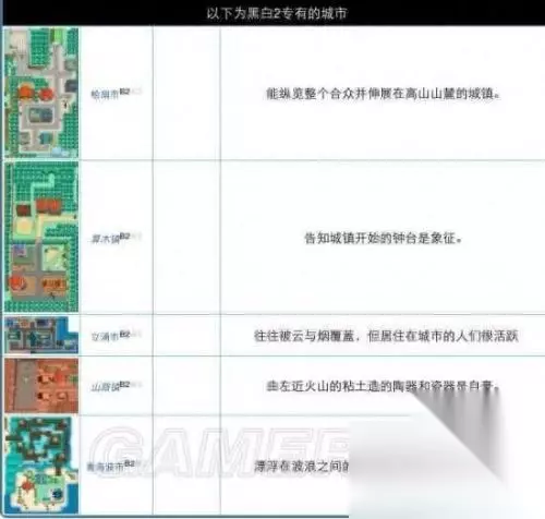 合众名市-飞云市 到飞云市才知道什么是口袋妖怪的大城市。 首次将口袋妖怪做成立体的大城市,来之前还要通过飞云大桥。 不过虽说是大城市,这儿却充满着和谐,北边的音乐公园、小巷子里的咖啡屋、南边辽阔的大海……