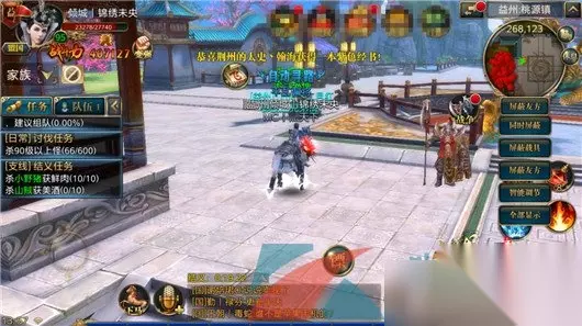 2、接取结义任务后,按照指引将桃源镇的小怪全部击杀返回刘备处,交付任务;